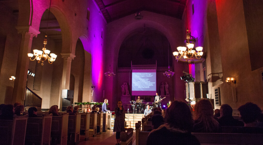 Folkekirken er Danmarks største koncertudbyder med kirkekoncerter i alle musikgenrer. Fra torsdag d. 6. maj må der igen holdes koncerter med op til 500 tilhørere. Foto: Rockgudstjeneste i Sankt Markus Kirke, København.