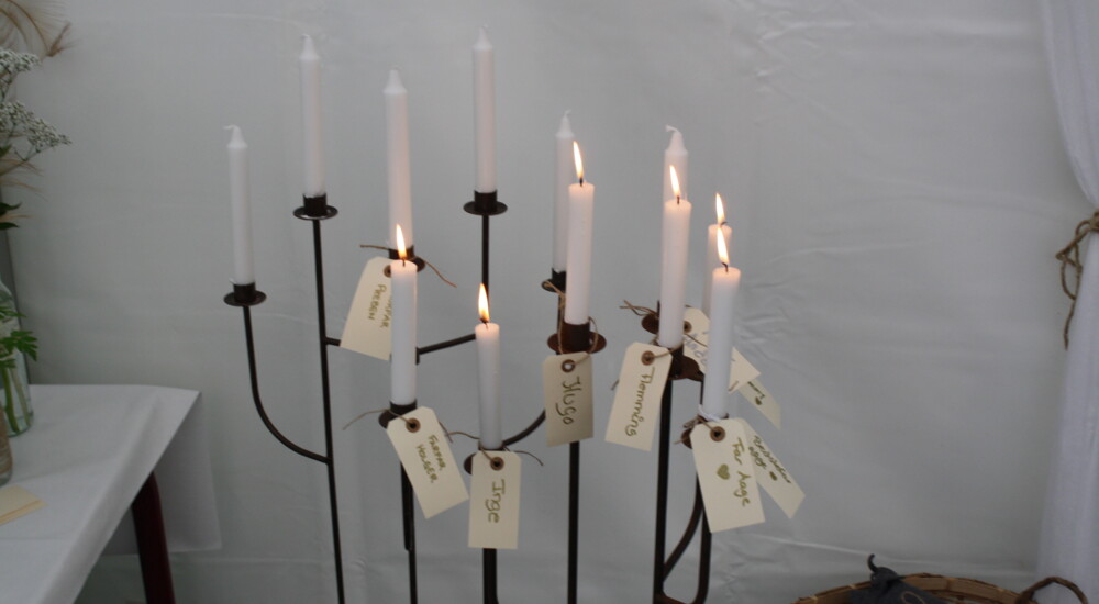 - Min morfar og farfar døde begge to kort før brylluppet. For at huske dem og andre, der ikke levede mere, lavede vi en flerarmet lysestage, hvor man kunne sætte et skilt med navn fast og tænde et lys for at huske på dem, siger Maja.