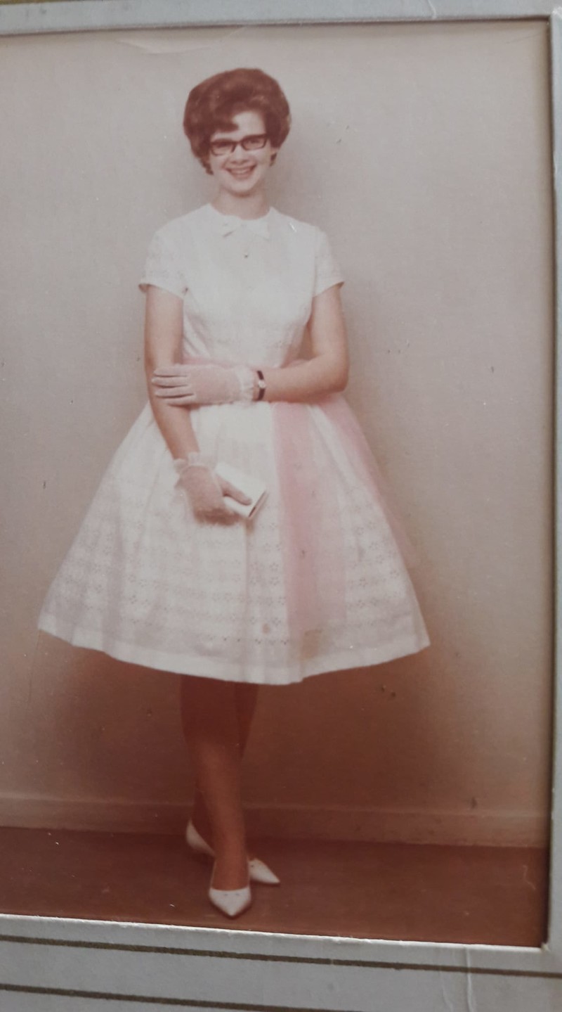 - Jeg blev konfirmeret 12. april 1964. Lyserødt skærf, hvide handsker og sko med hæl samt permanentet hår. Jo, så var man næsten voksen.