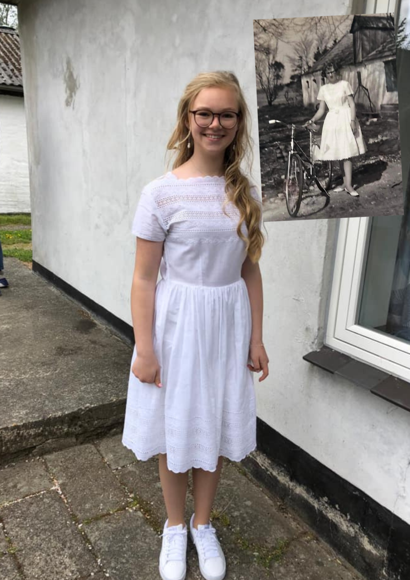 - Jeg blev konfirmeret den 2. maj 1965. Den 13. maj 2022 blev mit barnebarn konfirmeret i samme kjole.